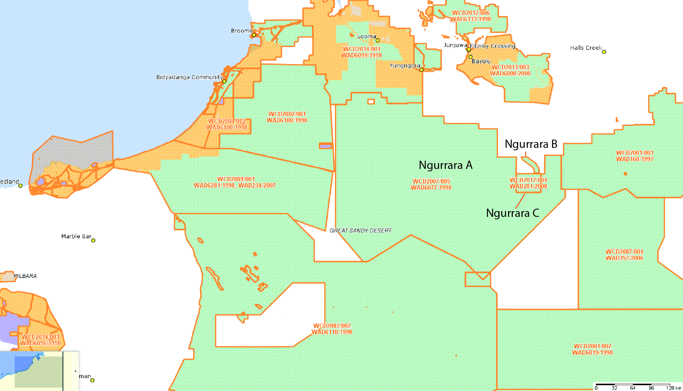 Pirnini was where our old people painted the famous Ngurrara canvas, which we used to prove our connection to country when battling for native title. The canvas was a collaborative work, a map of our country illustrating all the living water, all the freshwater jumu and jila across the desert. The only concession to Western mapping is the depiction of the Canning Stock Route. Sections of this canvas have been used at the top of the website. In 2012, native title was granted to Ngurrara B and Ngurrara C.